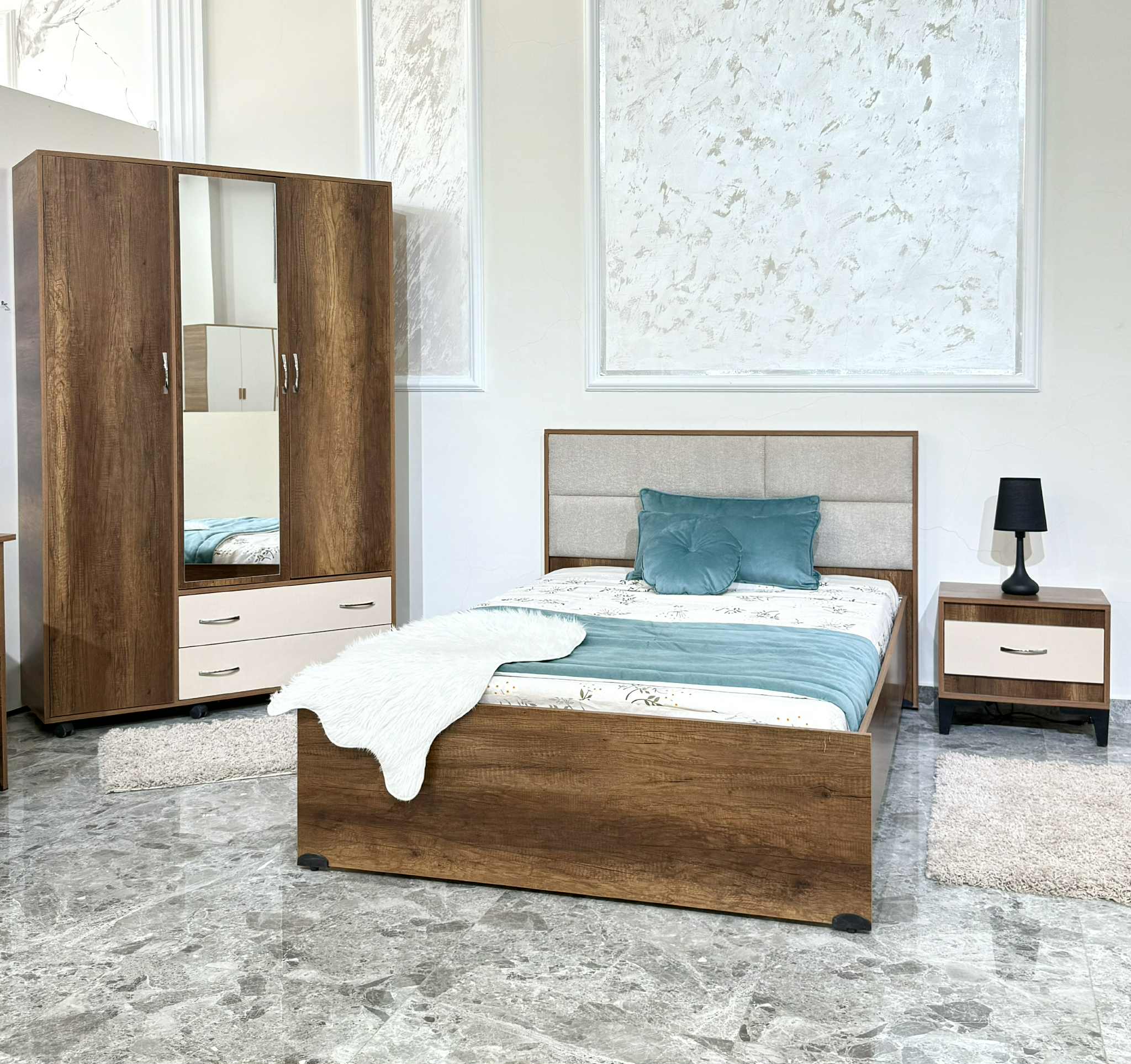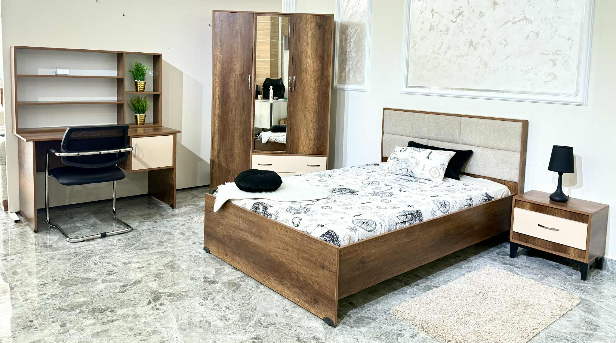 La chambre enfant Chahine est une chambre sobre et polyvalente, qui s’adapte facilement à différents styles de décoration intérieure.