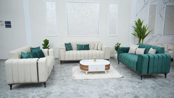 Composé d’un canapé 3 places et deux canapés 2 places, il allie confort et originalité. Ses finitions noirs subtilement intégrées apportent une touche de sophistication supplémentaire, transformant votre séjour en un espace chic et harmonieux.