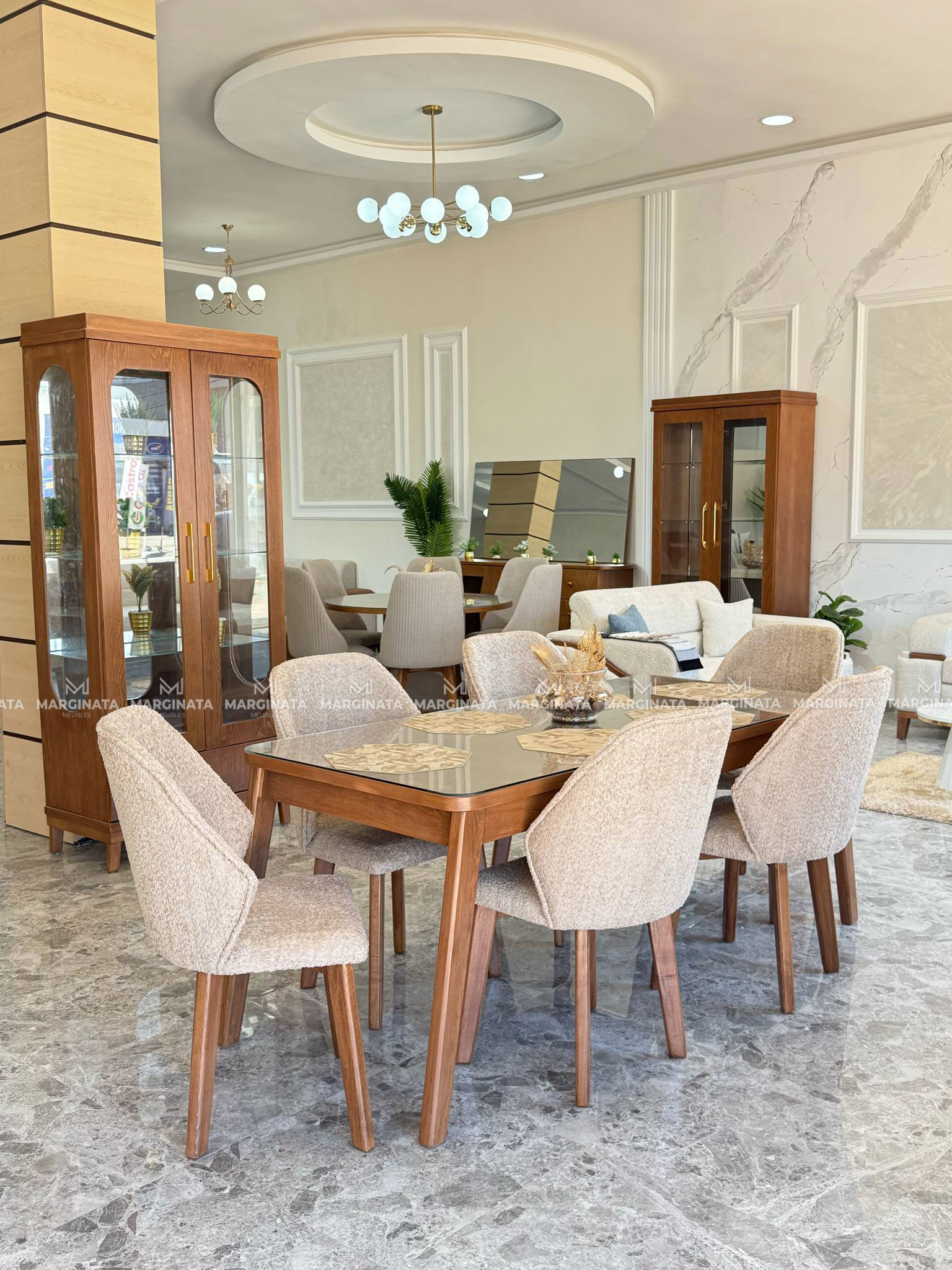La table à manger moderne Nour avec 6 chaises est parfaitement adaptée aux grandes familles ainsi qu’aux moments de convivialité entre amis.